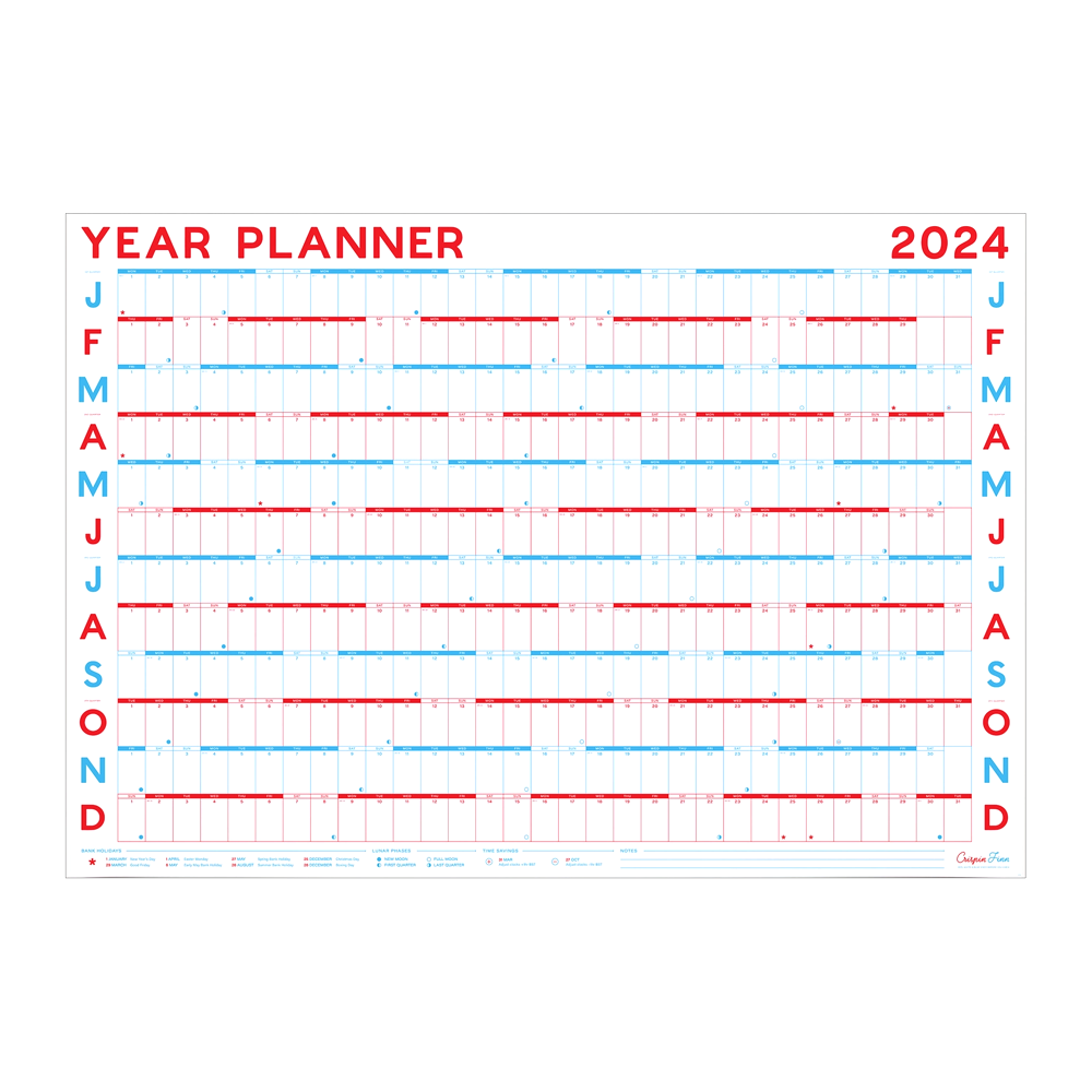 Buy Printable PDF 2024 Full Year Wall Planner A2 & A1 Landscape